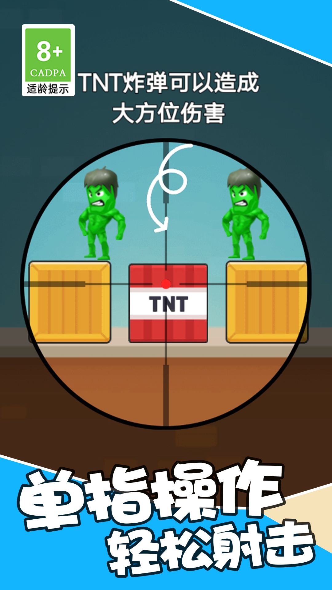 一枪吃鸡是一款玩法轻松趣味的射击闯关手游,玩家在游戏中需要一枪消灭关卡中所有的敌人,考验玩家的脑力与操作,感兴趣的朋友就快来下载一枪吃鸡体验吧!
