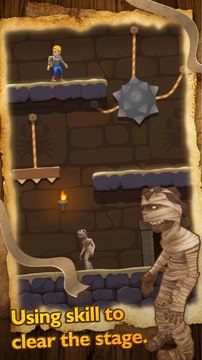 遗迹冒险中文版中玩家前往下一个位置需要利用绳子前往。