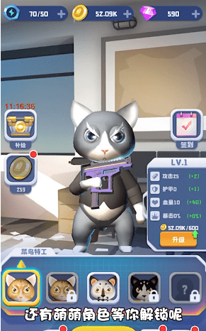解锁更多游戏模式,可以解锁不同的特工猫咪,自由切换角色开始冒险。