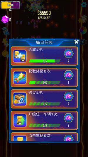 2、花费一定的钻石和金币来升级你的战车,能够提升你的战车的攻击力和攻击速度,合成才能够增加攻击范围。