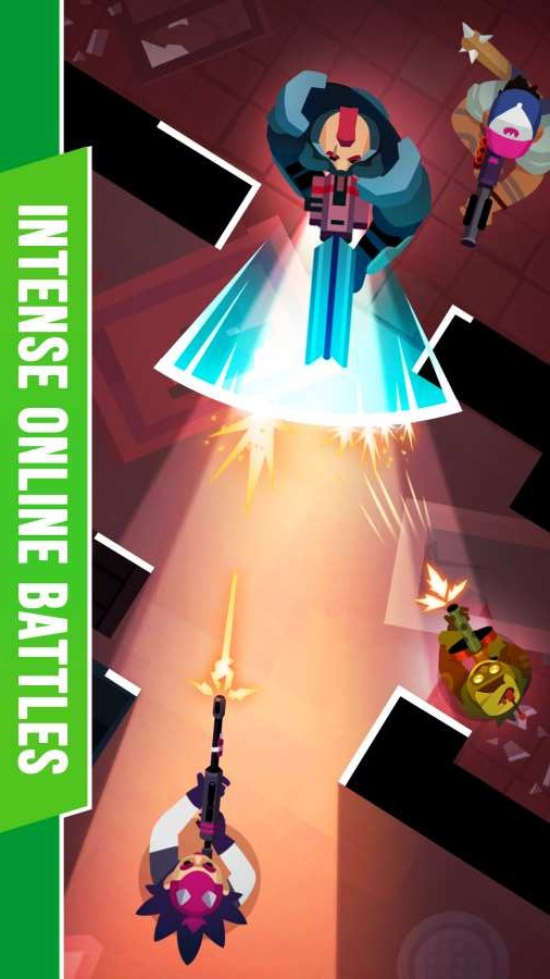 (b).享受最快节奏的枪战对抗,解锁数十位不同的角色,享受俯视角枪战乐趣;