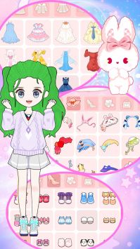你可以创造属于你自己的可爱角色,服装、发型等任意组合!