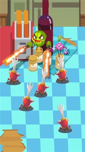 美食大作战是一款卡通风格的战斗冒险游戏,美食大作战拥有众多的游戏角色,玩家可以扮演自己的角色加入战斗。在这里玩家可以组建美食小队,发挥强大的技能击败敌手,赢得战斗的胜利。游戏操作简单易上手,丰富的武器技能供玩家解锁,各种各样的关卡任务等待玩家来玩耍呀。