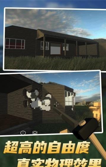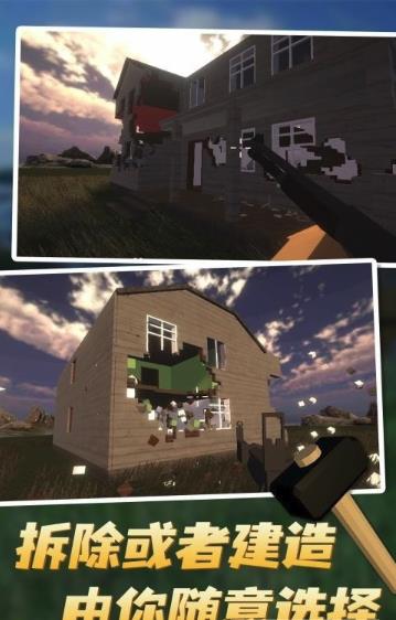 1、模拟房屋拆除的画面非常逼真,可以任意选择不同的武器和工具。