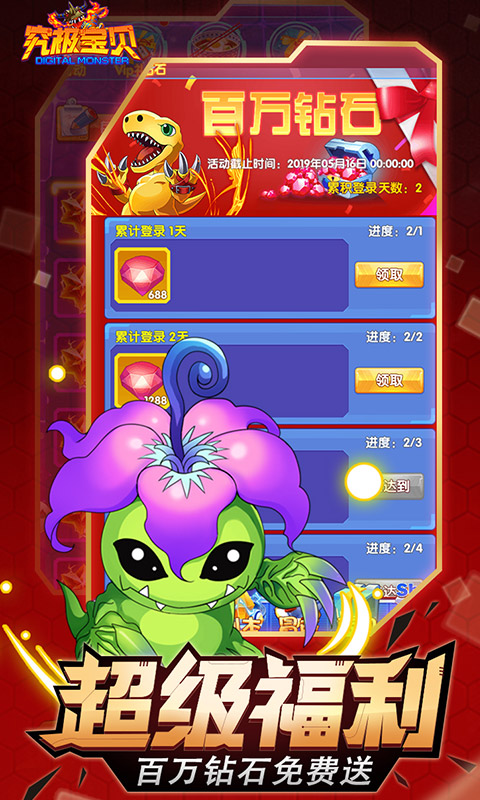 2、上线赠送vip14,钻石*12888,体力*999,金币*999万