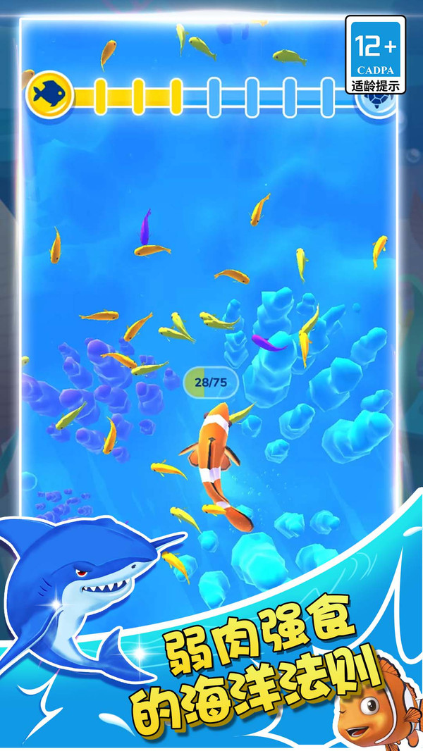 鱼类的吞噬进化冒险,从小与开始的进化之旅,吃掉其它鱼类,走向食物链之巅,适合全年龄玩家游玩,上手很是容易。