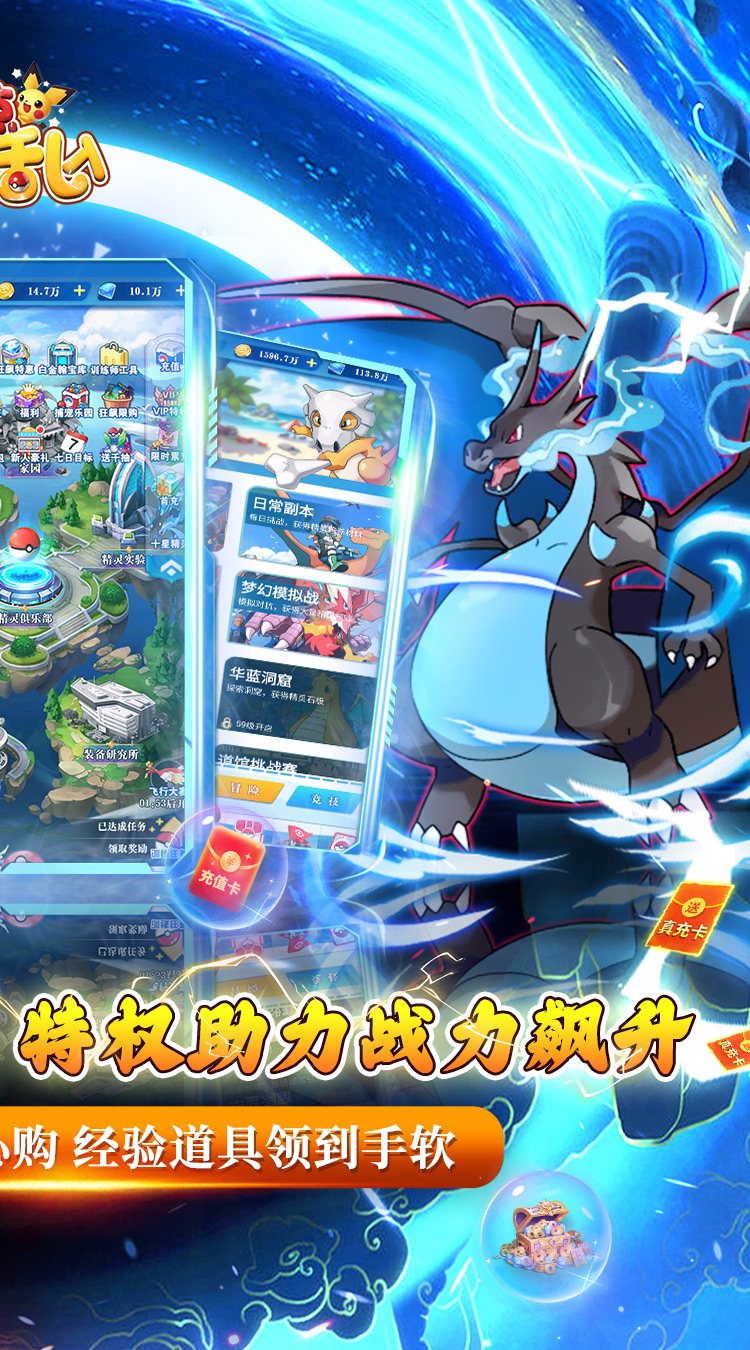 3,通关主线送御三家自选礼包,助力御三家升星!捕宠乐园无限十连,主角等级达到30级凭卡提取!稀有精灵刷到你满意为止,再也不用刷初始号啦!