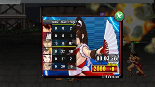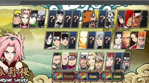 2、火影VS拳皇是一款横版街机拳皇风格背景,卡通人物众多,玩家可以选择组队;