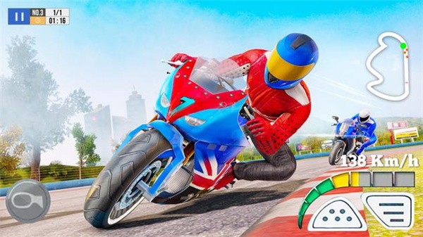 3、骑上你的涡轮摩托车赛车,交通骑手,系好你的装备,展示一个疯狂司机的疯狂技能。