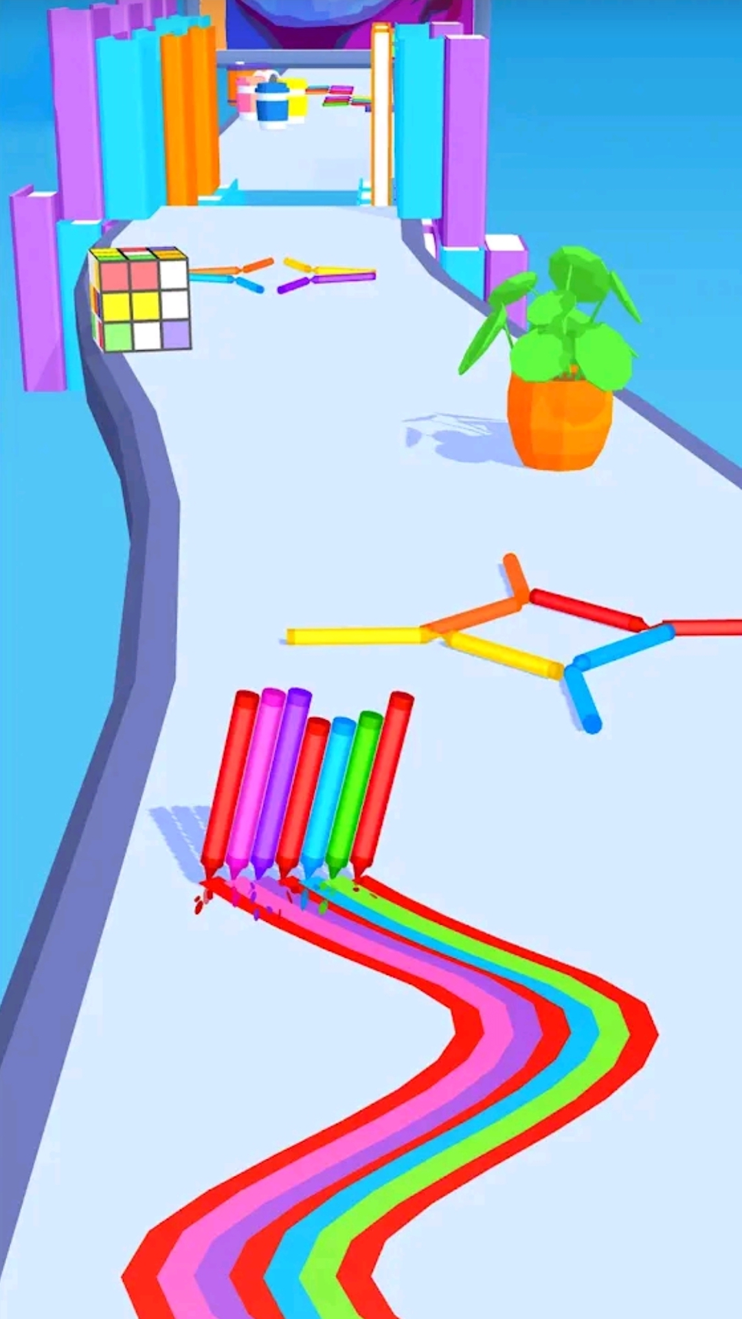 3.玩家控制铅笔角色进行3D三人组跑酷。立体图跑道。