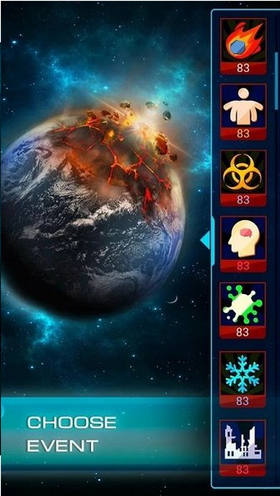 1,可以用宇宙的视角来利用各种末日对地球进行攻击,画面很有科幻色彩,不同的灾难会造成不同的结果。