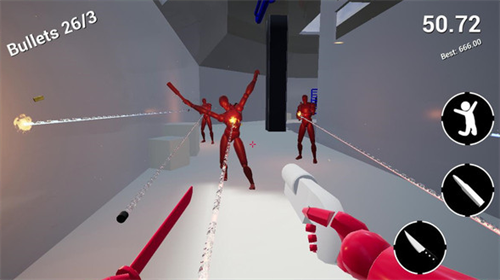 3、所有敌人都是红色的,在一个简单的游戏中脱颖而出,玩家可以使用各种武器击败所有对手。