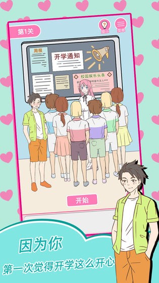 我的第一次苹果版是一款漫画风格的恋爱解谜类手游,在游戏中,玩家需要帮助钢铁直男的主角成功撩到心爱的女神,学习到各种撩妹技巧和约会技巧,完成从一个直男的蜕变。