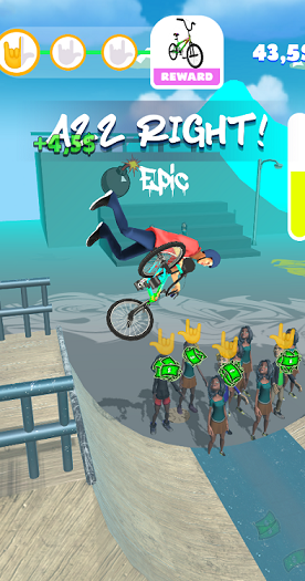 1、游戏中采用3D视觉表现,让玩家更加立体感受BMX特技的乐趣;