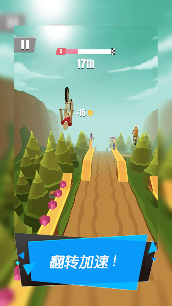 不同的是你要在空中控制好自己的平衡,注意不要翻车让对手超过你。这里有很多跳跃。