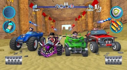 1、收集游戏币、升级和各种挑战来解锁不同的技能,增强卡丁车的性能和能力。