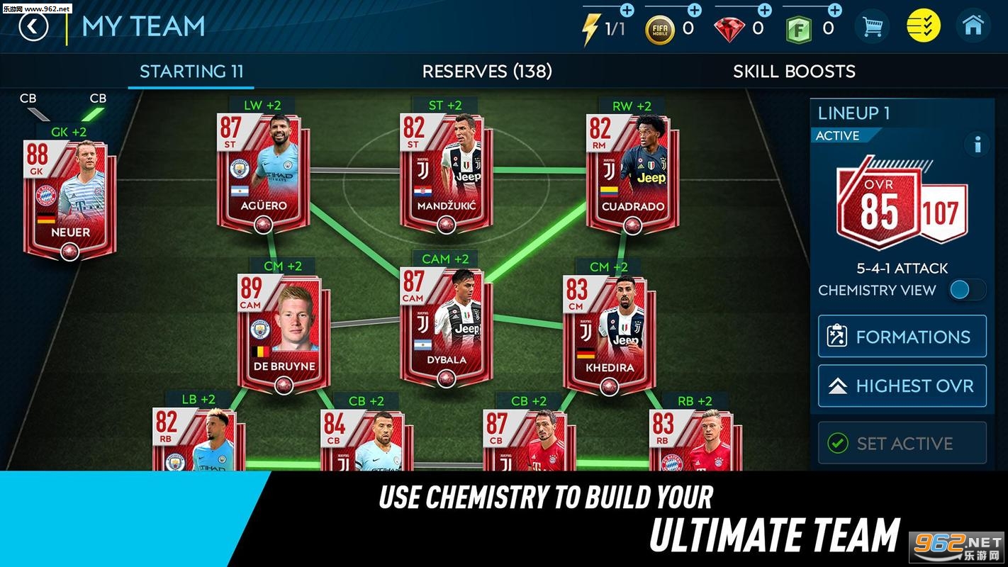 开始使用化学建立你的终极团队,并在你的起始XI中包括同一俱乐部,联盟或国家的球员时让你的球队站起来。当您从超过550个真实球队中选择球员时,为您的阵容增加深度,并在每场比赛前调整战术。拨打正确的电话,观看您的俱乐部成为终极团队。