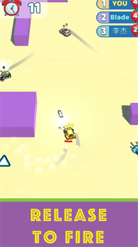 2、一定要隐藏好自己的位置,因为其他的赛车也会向我们发起攻击,找到隐藏位置之后就能够躲避这些攻击。