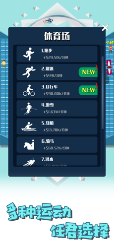 四.多项运动自由选择,玩家能够选择从跑步,自行车,滑雪等多项运动。
