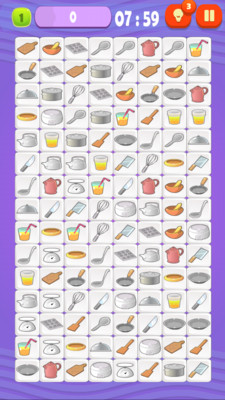 一款相当休闲的连连看游戏,游戏以厨房用具为主题,结合经典连连看玩法,游戏有时间限制,再按一定规则连接相同的厨具后,则可以增加一些限定时间。