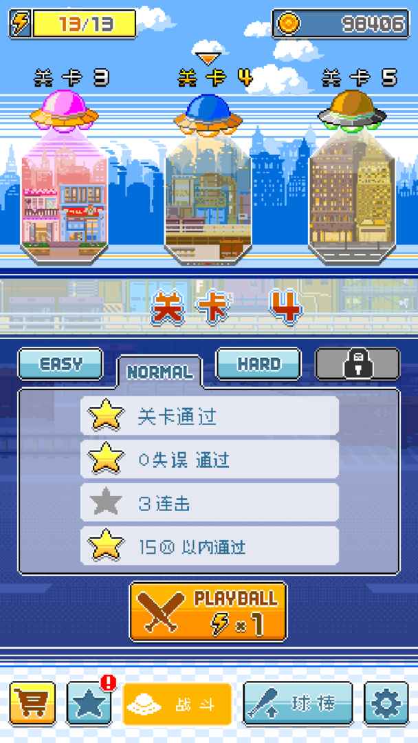 《棒球英雄》一款单机游戏,游戏画风采用街机复古像素风格,在操作和玩法上也采用了一般休闲游戏中的点击按钮。玩家只需要在合适的时间点击屏幕,回击外星人扔出的球,就能造成伤害。