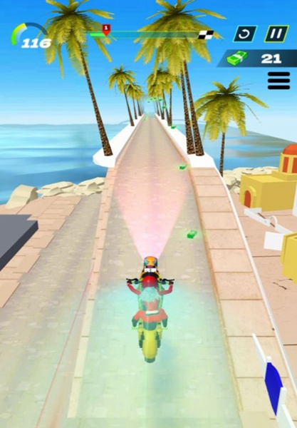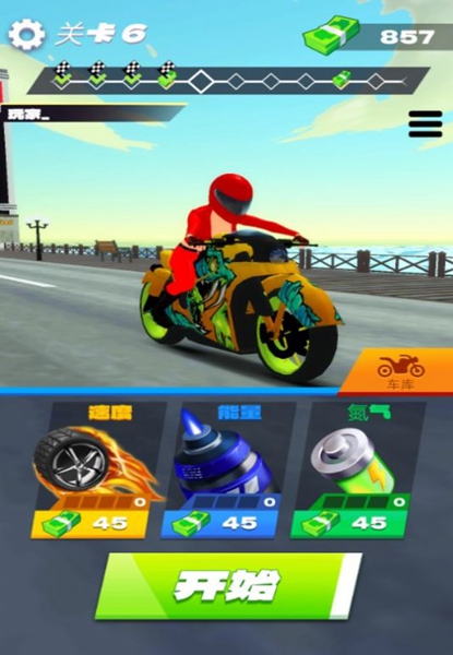 3、简单易学的操作方法,使你很快就能进入游戏,并能很容易地驾驶摩托。