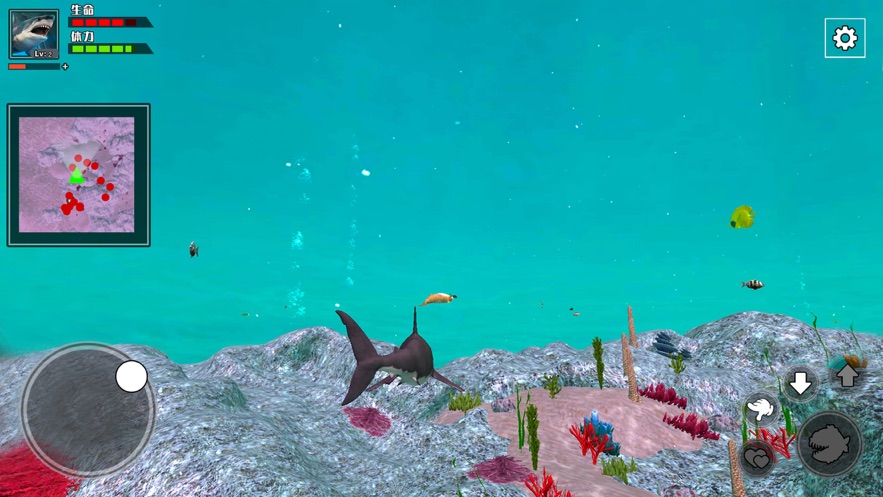 3、画面和细节设计非常赞,从环境到不同种类的鱼,将所有画面都有话到极致,除了自己操作的鲨鱼看起来没那么好看以外。