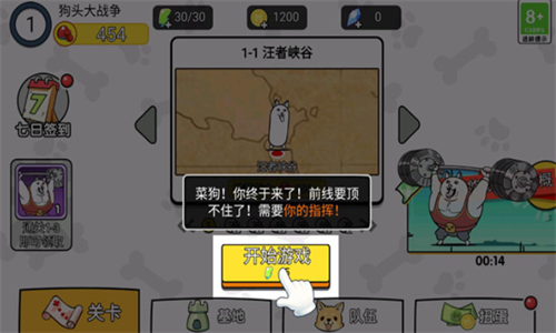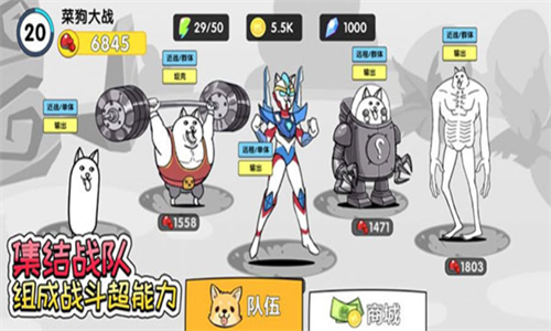 1、各种各样的狗头来袭,组建阵容,进行交锋,迎接一系列的敌人boss们