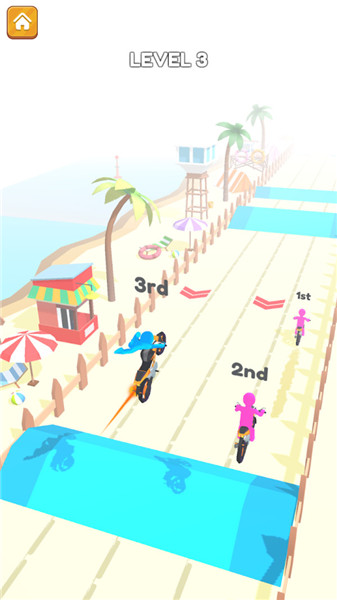 骑上我心爱的小摩托是一款趣味的摩托竞速游戏,游戏的画风非常的简约,玩家将在游戏中控制自己的香蕉人进行趣味的竞技比赛,在你的赛道上拥有非常多的障碍物,指尖的滑动挑战位置赢得第一。