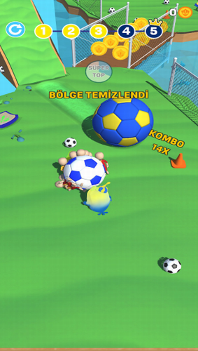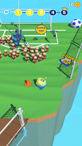 1、游戏中玩家操作着小鸡将足球在自己的脚下进行踢来踢去。