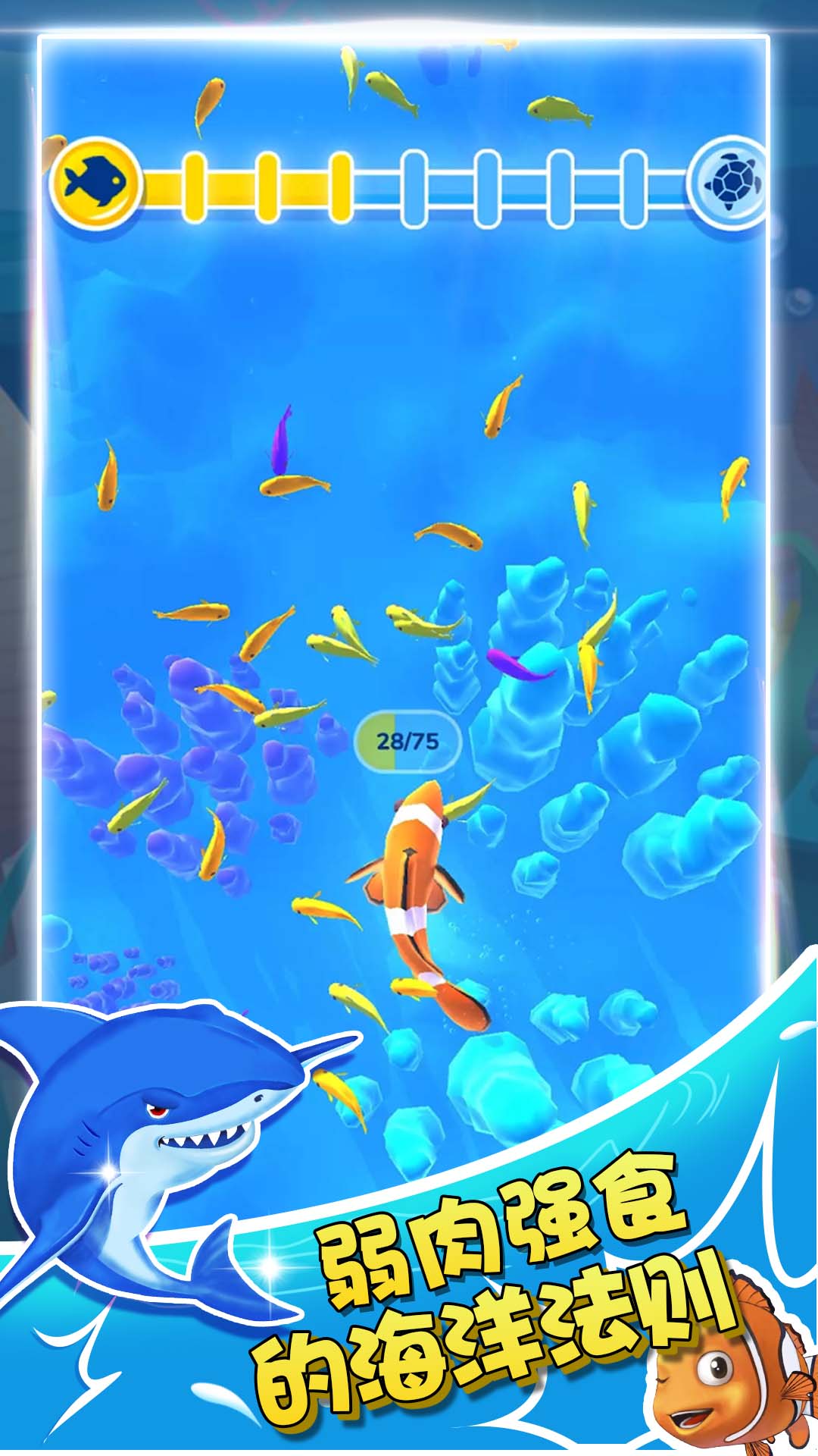 (1).这款游戏的玩法是以魔性吃小鱼为主,让玩家停不下来,只有不断的进行吞食,才可以将自己的小鱼进化为神奇的鱼种。