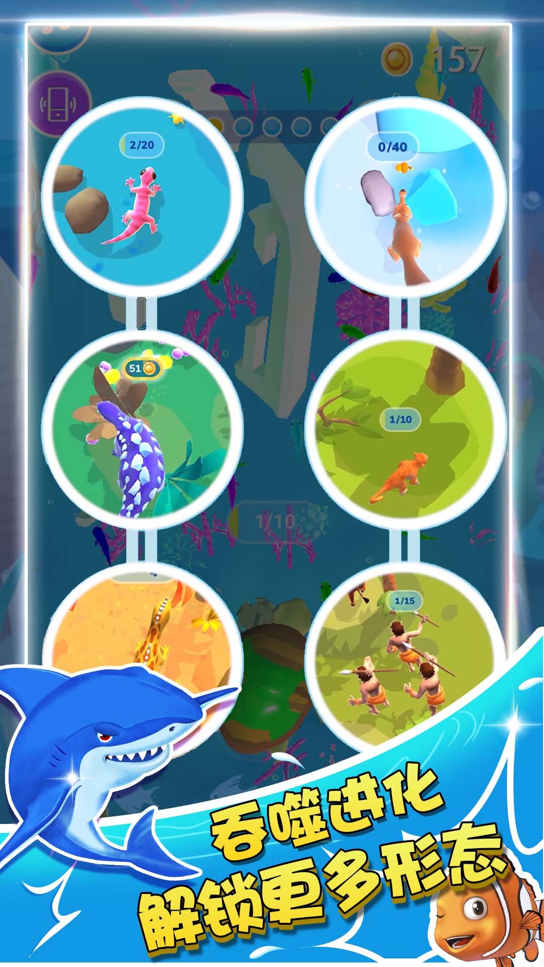 (3).每条鲸鱼都有大白鲨等着你去发展,成为大海的主人,更多玩法等你体验。