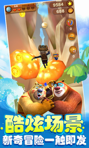 3、首创BOSS战:游戏中熊大不是只有被追的命,拿起武器反击光头强吧。