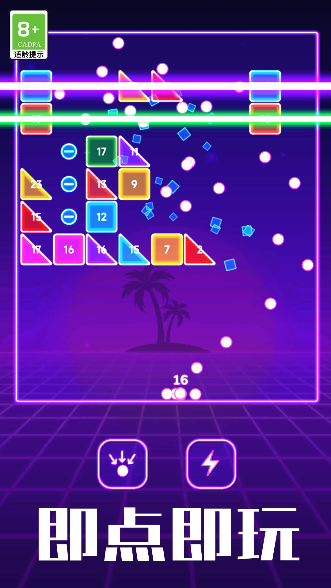 进击吧方块是一款玩法解压、休闲有趣的打砖块消除游戏,画面绚丽,上手难度很低。在游戏中,玩家操控并发射小球来弹射数字方块,小球每击中一次方块即可消除一个数字,当数字归零时即可完成消除挑战,感兴趣的玩家快快下载体验吧!