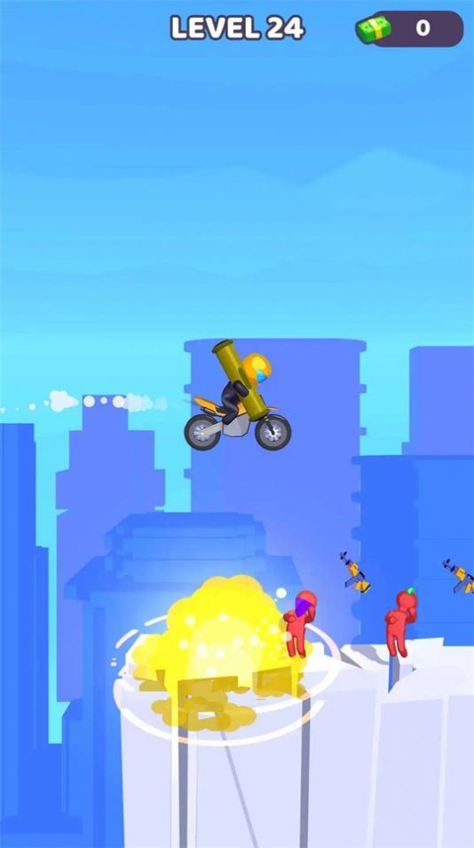 1、你的摩托车配备了非常先进的射击武器,你可以通过射击淘汰所有运动员。