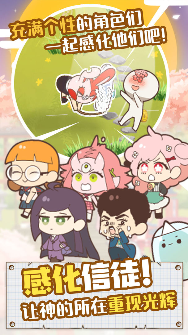 病病神社建造中正版下载是一款有着神奇的治愈效果的模拟养成手游。游戏中你需要在一片荒无人烟之地建设一座神社,通过持续不断的点击从石子路走上来的各种不明生物信徒,让兔子头使劲捶打他们,再去点击拾取他们掉落的金币就行了,游戏采用Q萌的画风,丰富的剧情故事,玩法元素非常的有趣,这里每天都会发生一些爆笑又感动的趣事,非常好玩。