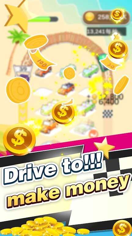1、这是一个合并和闲置的汽车游戏,合并汽车以使硬币更快、更高效。