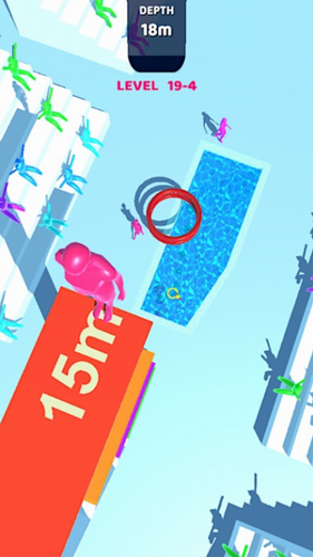 2、美术风格比较独特,在进行高台跳水的过程之中我们还需要完成各色的动作,穿越众多的机关圆环。