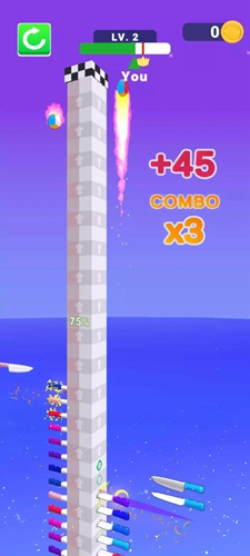 1、开始有趣的飞刀挑战,还能切换不同而定道具,帮助你轻松通关获胜。
