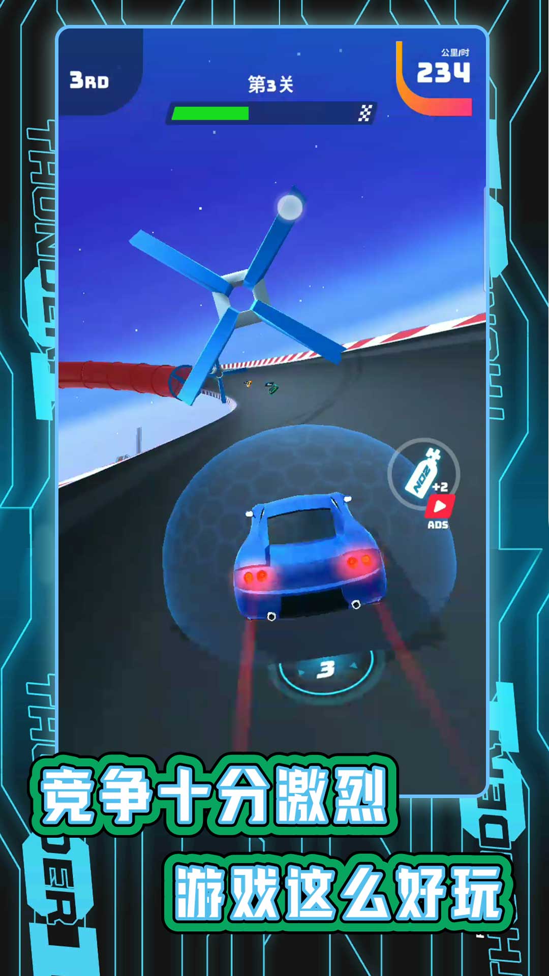 3.选择适合自己的驾驶方式来赛道上完成挑战,自由的发挥出你的驾驶技能来赢得比赛。