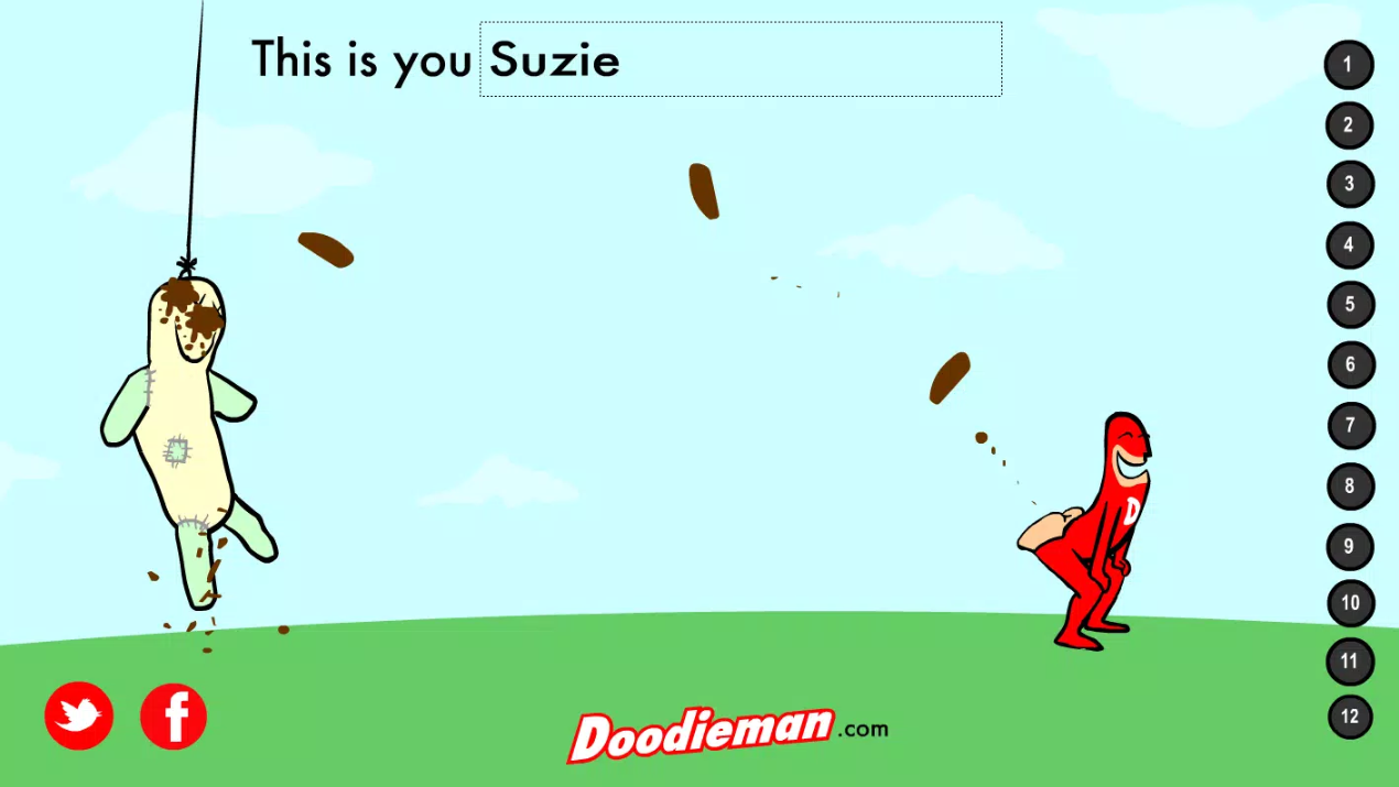 大便超人是一款休闲恶搞小游戏,玩家可以控制大便超人将自己的大便射向小布偶身上,游戏的关卡非常多,不同的造型和角度,玩家的射击放心和力度都是有要求的,感兴趣的小伙伴赶紧来下载吧。