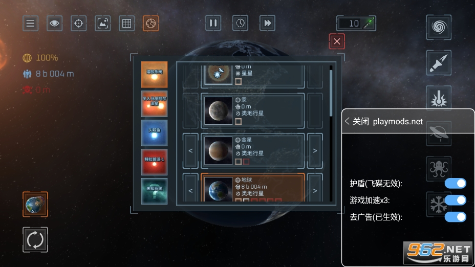 2.玩家可以自己创造一个星系,火星、水星、木星、土星等等,建造完美的天体系统,实现公转和自转。