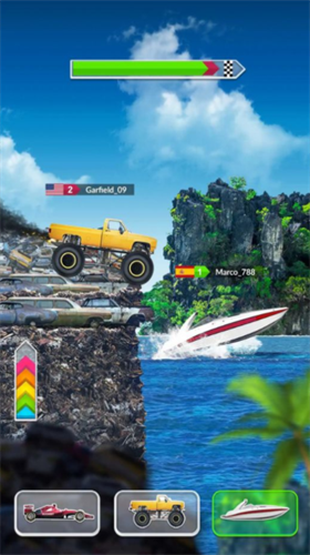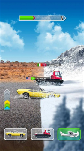 3、在比赛中,收集加速、升级和道具可以帮助更快地完成比赛。