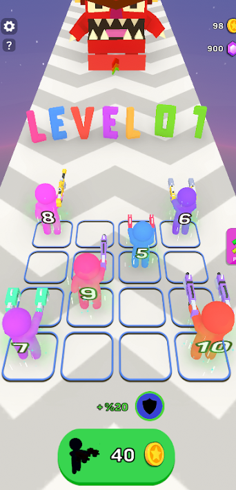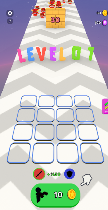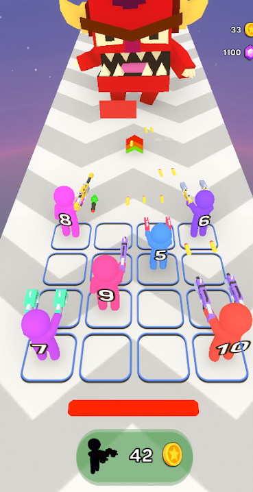2、不断的合并火柴人,扩充自己的部队规模,同时利用技能战胜敌人。