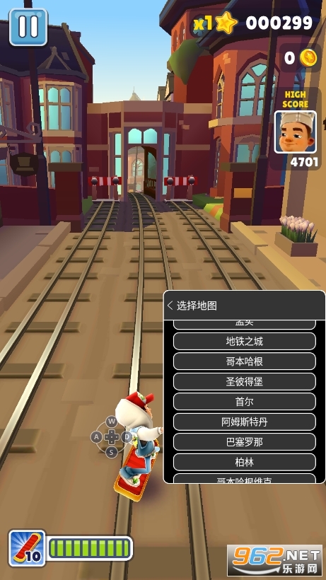 1、动感的背景音乐与快节奏的跑酷玩法,城市的美景在飞速的后退,我们在疯狂的向前奔跑,争取夺得更高分数吧;