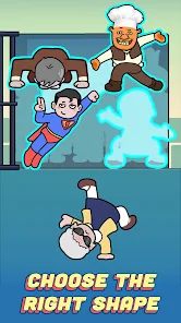 你会遇到很多奇怪的朋友:僵尸、奶奶、超人、水手……世界各地。他们有一个共同点,就是摆出滑稽的姿势。任务是用奇怪的人的正确姿势填充阴影,确保警察在没有人注意的情况下经过。