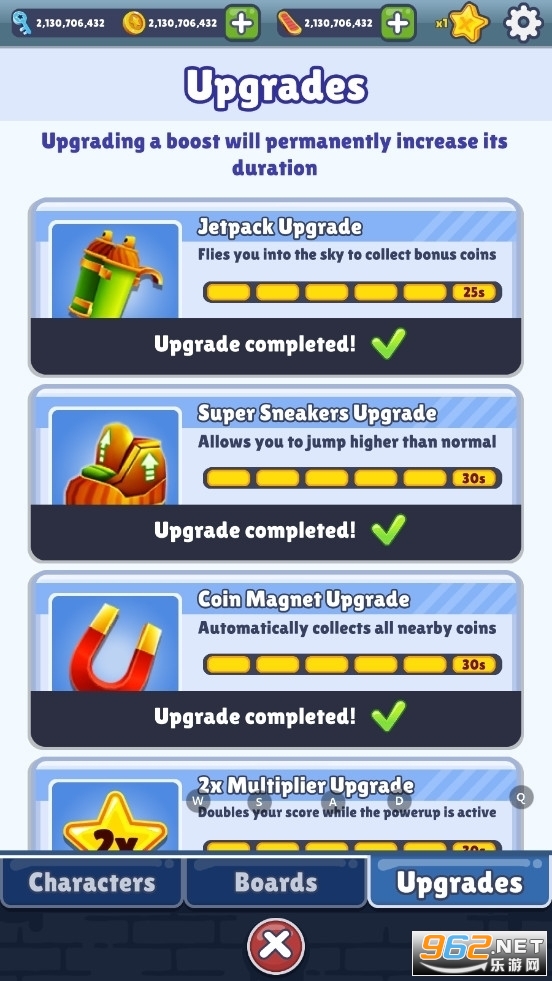 获得双倍分数(2X乘数)后,在道具有效时间内收集的每一枚金币都可以获得原来倍数的两倍分数。
