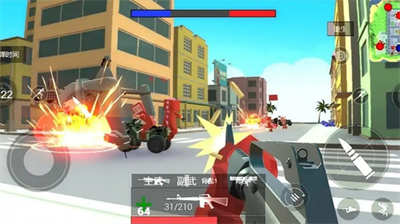 A.内容:游戏内有着像素的画面风格,玩家在游戏内享受到各种全新的像素战争;