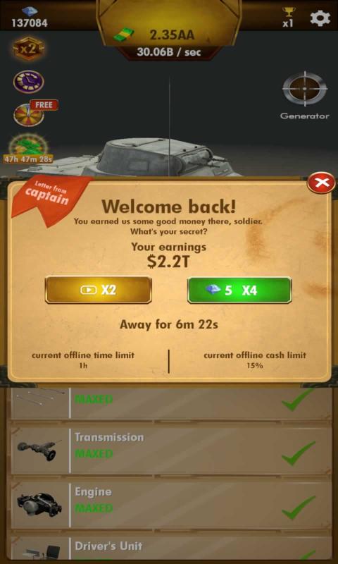 每个零件都会随着时间产生资金,使用资金购买各种各样的零件,然后一步一步地组装坦克!