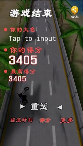 3、游戏方法很简单,倾斜手机来控制摩托车方向,点击屏幕加快速度。